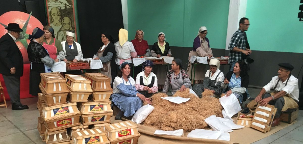 El Proyecto de Desarrollo Comunitario de La Aldea, erneut, sigue cosechando éxitos. En esta ocasión fue en el marco de las Jornadas del 130 Canario Jahrestag Tomate Export, donde recrearon la actividad de un antiguo almacén de empaquetado y los bailes de taifas.