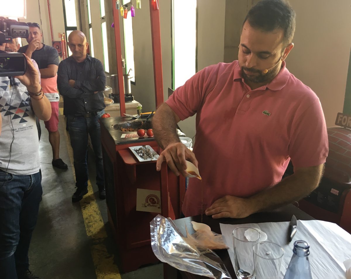After the presentations the turn came gastronomy. After tasting a white wine and red wine Daute Isora Designation Icoden, Orone variety of tomato was tasted in a variety of proposals. Chef Juan Carlos Padron, Restaurant chef 'Corner Juan Carlos', He did a cooking demonstration in which he showed the qualities and peculiarities of Canary tomatoes in the kitchen. This act and all the afternoon session were broadcast live and online (streaming) through canaltenerife.tv.