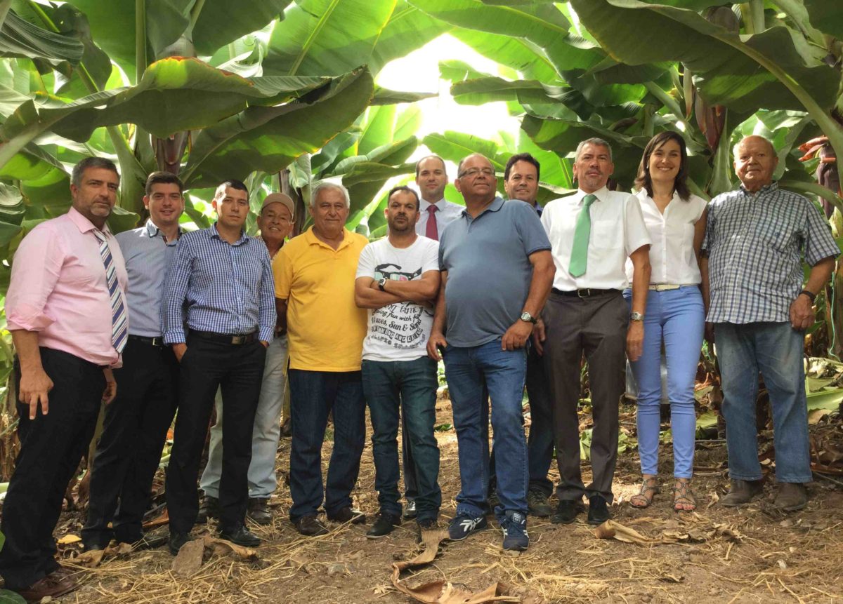 Nach dem ersten Schnitt folgte die Verkostung der ersten Bio-Bananenananas, zusätzlich zum Rektor und den anwesenden Mitarbeitern, Die Leiter der Finanzinstitute von Bankia nahmen daran teil, Cajamar Caja Rural, BBVA und CaixaBank, der Leiter der Agrarberatungsagentur von La Aldea, así como el alcalde y el concejal de Agricultura del Ayuntamiento de La Aldea de San Nicolás.