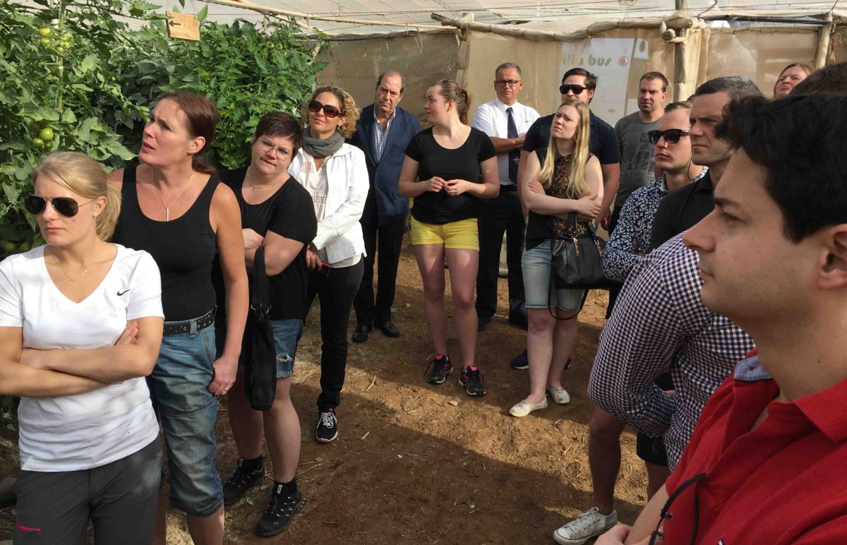 Am zweiten Tag zog die Delegation zu den Ernten der Bonny-Gruppe im Südosten von Gran Canaria. Die Expedition besuchte je nach Ausrichtung des Anbaugebiets eine Vielzahl von Gewächshäusern und Strukturen. Auch, Umzug in die Entsalzungsanlage der Bonny-Gruppe, Wind angetrieben, um die Bewässerung der Pflanzen zu versorgen.