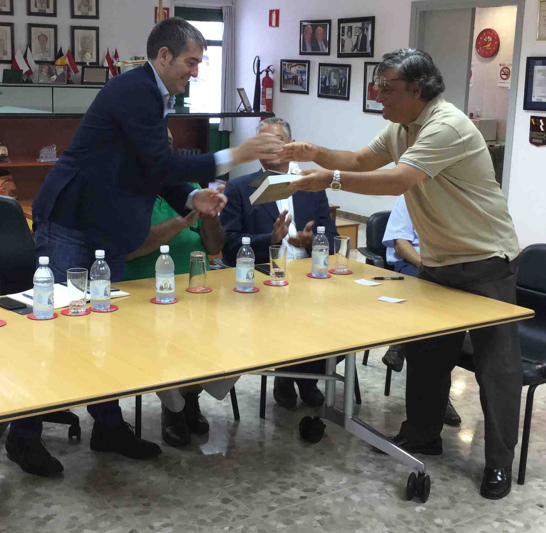 Tras el encuentro, tanto el presidente Clavijo como el consejero Quintero, fueron agasajados con libros y documentales entregados por sus autores, Francisco Suárez (cronista oficial de La Aldea) y José Pedro Suárez (responsable proyecto desarrollo comunitario).