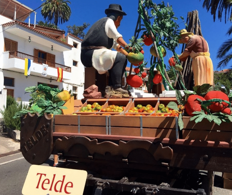 Das Design des Wagens Telde für Pilgrimage del Pino -von kommunalen Techniker Javier Martel mit Hilfe der Arbeiter der Abteilung für Feiern der Regie von Juan Martel- Es ist für das Angebot mit ceretos über die Zusammensetzung ihres Umfangs basiert, Tomaten als Haupttragelement.