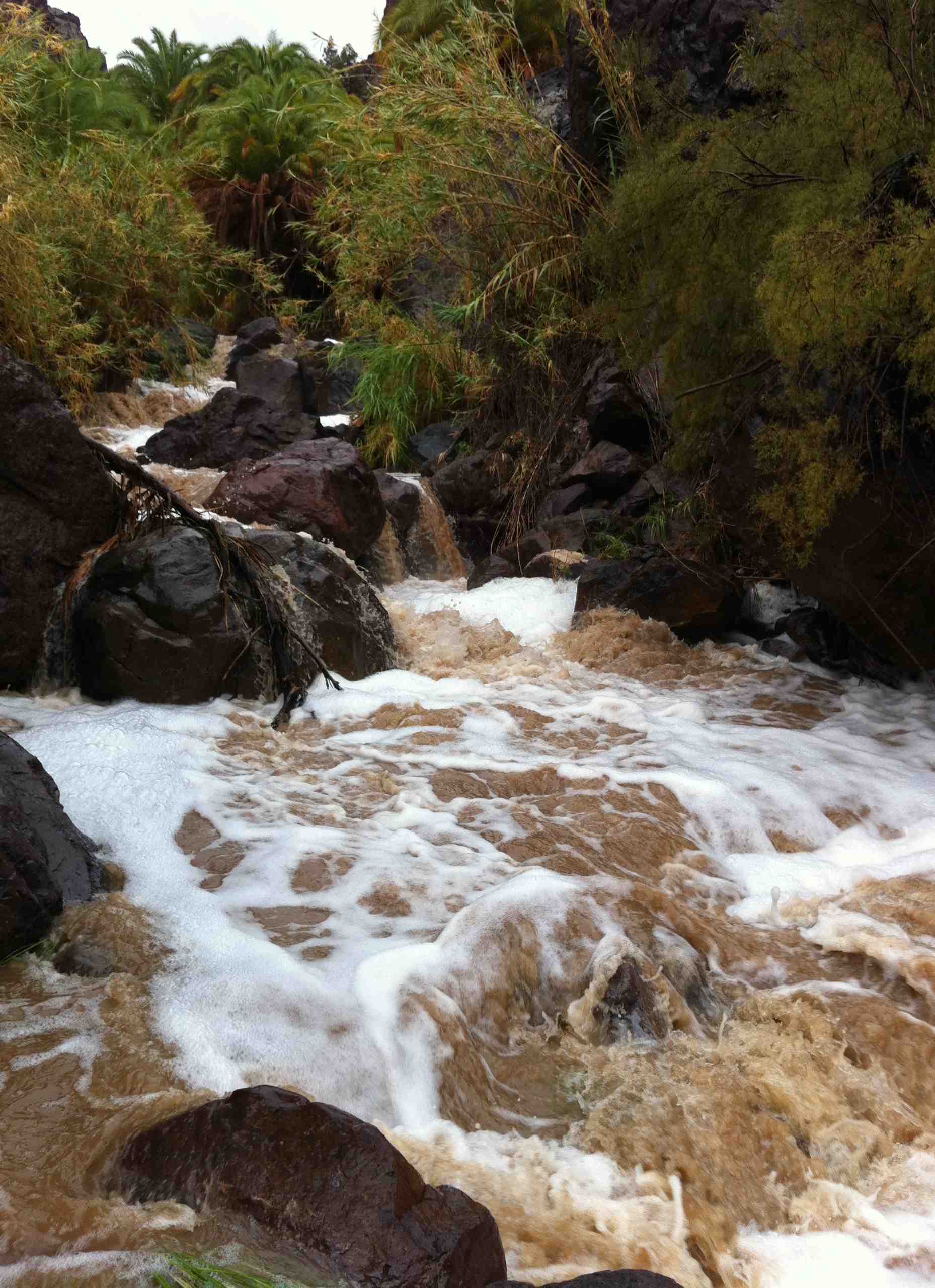La mayoría de cascadas y caideros del municipio dejaron estampas espectaculares en las que la gran protagonista ha sido el agua que, nok en gang, ha hecho que el barranco de La Aldea esté desembocando en el mar.